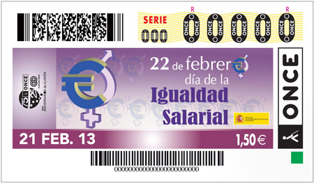 El próximo domingo, y el Día Internacional de la Mujer, el 8 de marzo, un total de 11 millones de cupones de la ONCE saldrán a la venta para conmemorar el Día de la Igualdad Salarial
