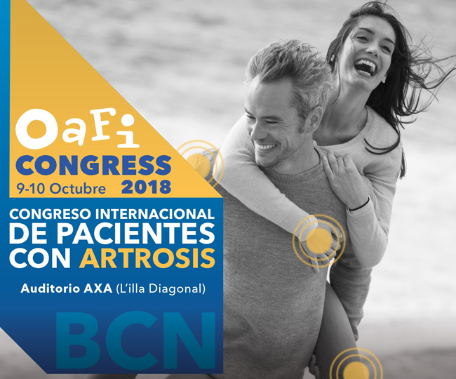 Barcelona, capital mundial de los pacientes con artrosis. Con el objetivo de dar notoriedad a la enfermedad y visibilidad a las personas que padecen artrosis, la Fundación Internacional de la Artrosis (OAFI) organizará el II Congreso Internacional de Pacientes con Artrosis. El evento será GRATUITO y tendrá lugar los días 9 y 10 de octubre en el Auditori Axa (L’Illa Diagonal) de Barcelona. El programa contará con actividades como: