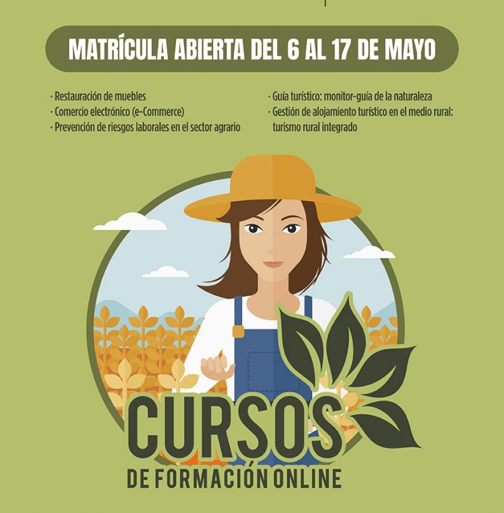 Los cinco cursos formativos se imparten a través del sistema e-learning y abordarán las siguientes temáticas: E-Commerce (Comercio Electrónico), Prevención de Riesgos Laborales en el sector agrario, Restauración de Muebles, Guía Turístico: monitor-guía de la naturaleza y Gestión de alojamiento turístico en el medio rural: turismo rural integrado.