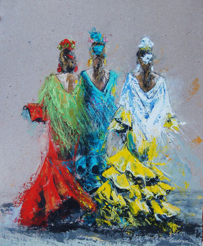 La pintora madrileña afincada en Sevilla inaugura este viernes su primera exposición individual en esta ciudad con una colección de treinta y dos obras -realizadas en 2016- con distintos formatos y procedimientos, cuya temática se centra principalmente en el arte de los toros y la Feria, con alguna concesión a paisajes y bodegones.