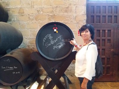 Angels Serra ha visitado Bodegas Tío Pepe y ha firmado una de sus botas