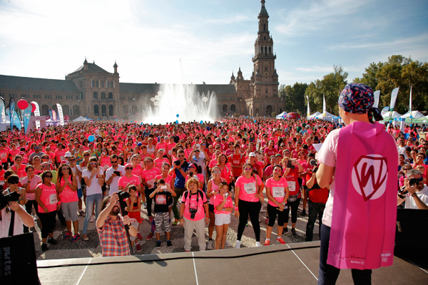 Ayer, Manme, que no dudó en unirse al proyecto, fue la encargada de representar a las andaluzas que están pasando por un cáncer de mama en un día tan especial como es la IX Carrera de la Mujer de Sevilla. Durante el evento les ha contado su historia de superación y ha pedido a las 9.000 mujeres que han invadido las calles de rosa que sigan el proyecto de cerca para lograr que la nueva Beca de investigación SEOM-‐Buckler 0,0 sea todo un éxito.