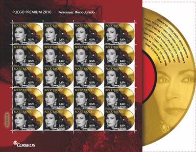 El Pliego Premium dedicado a Rocío Jurado cuenta con 20 sellos que reproducen un bello retrato de la artista con la melena al viento, junto a un disco de oro que representa los 150 que cosechó durante su carrera, junto a 63 discos de platino y más de 25 millones de discos vendidos. El disco está troquelado dando una forma redondeada al sello que lo hace más atractivo.