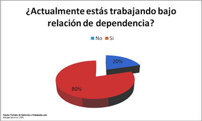 Los datos de la quinta Encuesta de Empleo se basan en un universo de 5.867 personas, cuyo 26% respondió estar trabajando actualmente. Si bien en la tercera encuesta realizada por ambos portales el 82% de la muestra había señalado que consideraría trabajar de manera independiente, en esta nueva pesquisa el 80% de los encuestados marcó estar bajo relación de dependencia.