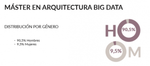 Otro dato revelador de este estudio es que el porcentaje de mujeres que deciden especializarse en Big Data o Data Science es aún demasiado bajo. En áreas como el Data Science, solo una cuarta parte de los estudiantes son mujeres: un 24,6%, frente al 75,4% de los hombres. Esta diferencia se acentúa más aún en las áreas más técnicas como es la Arquitectura Big Data, donde tan solo el 9,5% de los estudiantes son mujeres frente al 90,5% de los hombres.