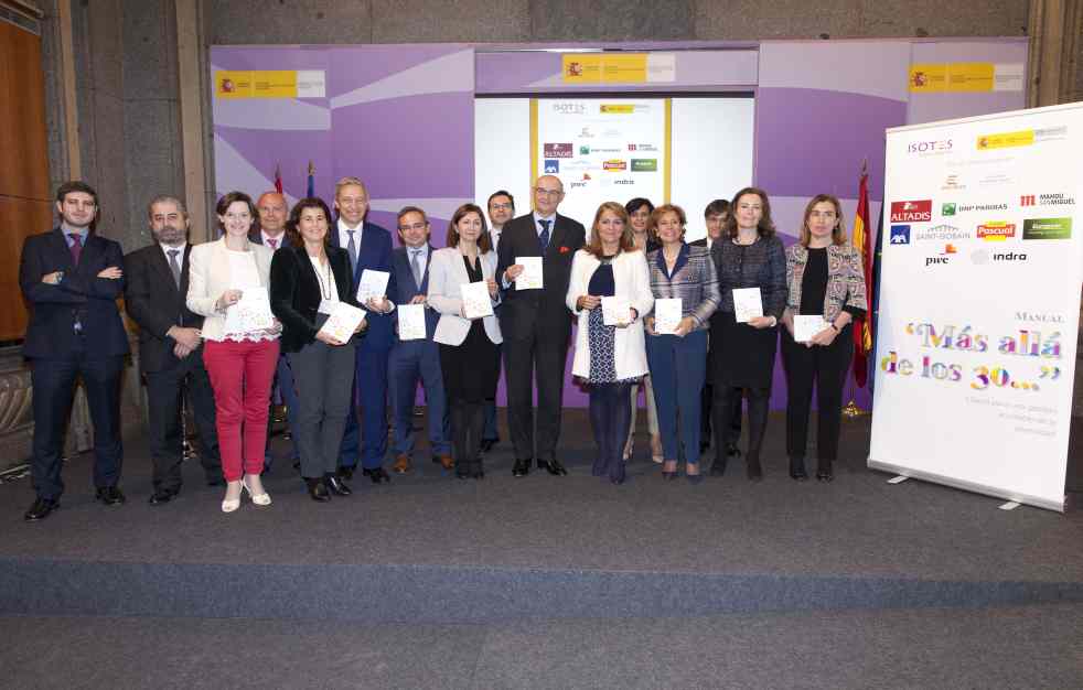 ‘Más allá de los 30’ ha sido coordinado por la plataforma Isotes, recogiendo los casos de una decena de empresas que han puesto en marcha medidas de ese tipo. La secretaria de estado de Servicios Sociales e Igualdad, Susana Camarero, ha sido la encargada de presentar la guía en un acto que ha contado con la presencia de la directora general de la Mujer de la Comunidad de Madrid, Laura Ruiz de Galarreta.