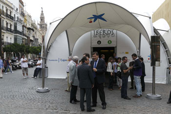 La Fundación Cajasol, junto a la Obra Social La Caixa y el Ayuntamiento de Sevilla, ha organizado la exposición ‘Íberos. Nuestra civilización antes de Roma’, que ha sido inaugurada este miércoles 19 de septiembre y estará abierta al público hasta el 30 de octubre en la plaza de San Francisco, frente a la sede principal de la Fundación Cajasol, en horario de lunes a viernes, de 12.30 a 14 horas y de 17 a 21 horas, además de sábados, domingos y festivos, de 11 a 14 y de 17 a 21 horas.