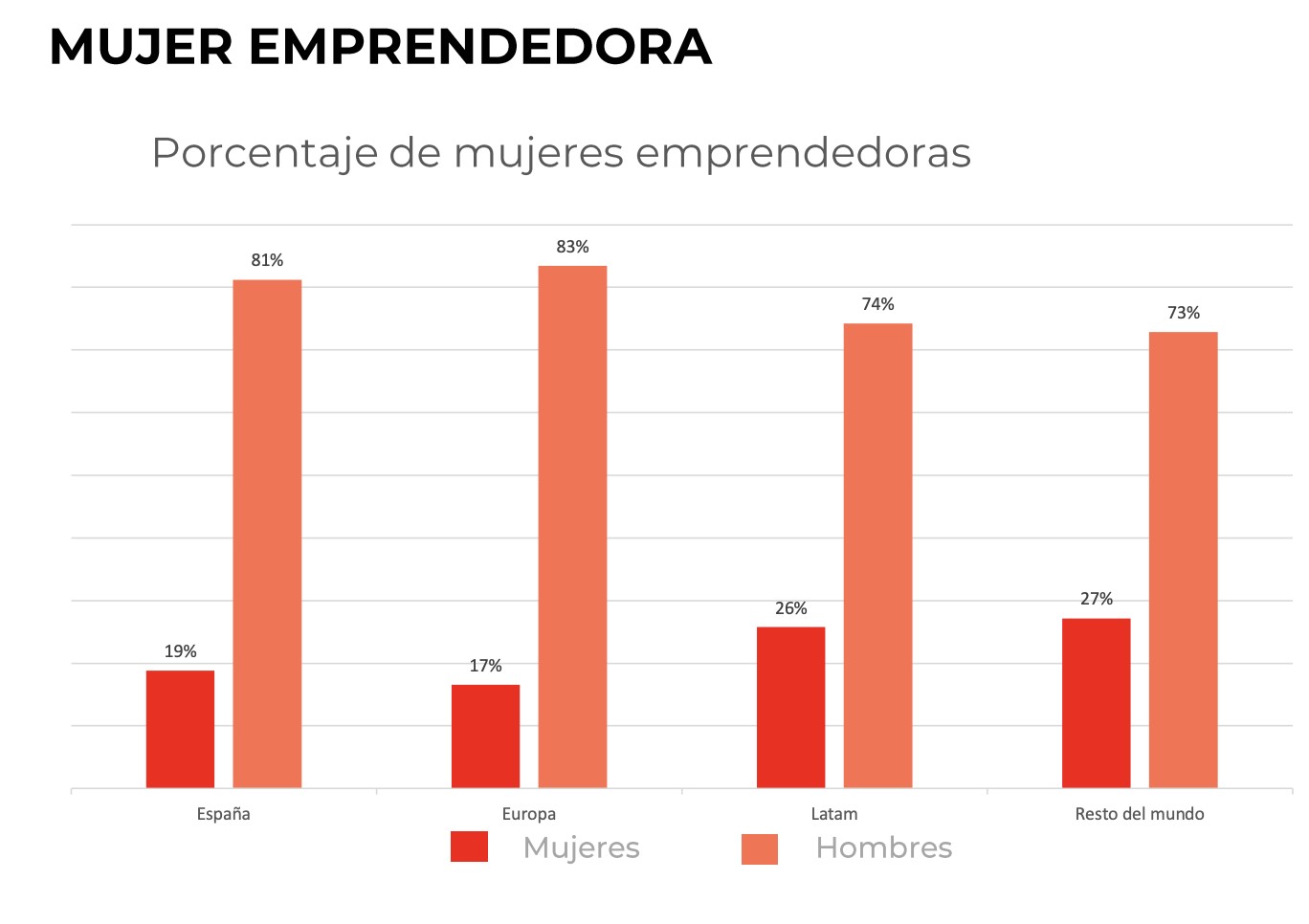 La TEA (tasa de actividad emprendedora) femenina en España está por debajo de la media europea (4,7% frente a un 6,3%), aunque por encima de otras economías impulsadas por innovación como Francia (3,4%) o Italia (3,3%).