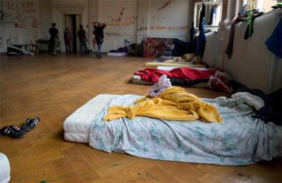 Foto: Un grupo de refugiados albergado en un colegio. ©Belga/DPA/M.Gambarini