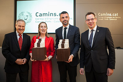 La ministra de Fomento, Ana Pastor, ha recibido esta semana junto con el conseller de Territori y sostenibilidad de la Generalitat de Cataluña, Santi Vila, la Medalla Ildefons Cerdà, que les ha concedido el Colegio de Ingenieros de Caminos, Canales y Puertos de Cataluña, en reconocimiento al esfuerzo de ambos por alcanzar acuerdos y extender lazos de entendimiento, siempre, en beneficio de toda la ciudadanía.