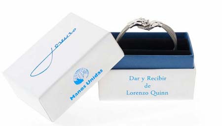 Además ha añadido: “Mis inquietudes me llevaron a volver a mirar la obra ‘Dar y Tomar’ y decidí darle un enfoque más humanitario, creando así una joya específica para recaudar fondos para la ONG Manos Unidas, ya que es perfecta para esta colaboración, porque trabaja alrededor del mundo para erradicar la pobreza y el hambre y esto para mí es primordial. Además yo soy un gran amante de las manos, las uso mucho como referente en mis obras para poder comunicar mis pensamientos a través de ellas. En este punto decidí cambiar el título de la joya por uno nuevo dando vida a Dar y Recibir, creo que ese título es más afín al concepto donativo, porque das esperanza y recibes una joya”