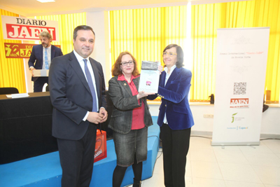 La escritora ha recibido el galardón de manos de Rosa Aguilar, consejera de Cultura de la Junta de Andalucía, que ha presidido una cita en la que también intervino el comunicador jiennense y profesor de la Universidad de Sevilla Antonio Checa Godoy, que ofreció una charla sobre la prensa en Jaén entre 1812 y 2017.