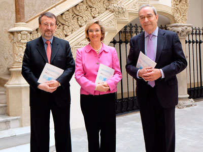Nuria Chinchilla, profesora del IESE Business School (Universidad de Navarra), Tomás Muniesa, Vicepresidente Ejecutivo-Consejero Delegado de VidaCaixa, y Jaime Lanaspa, Director General de la Fundación ”la Caixa”, presentaron ayer en el Palau Macaya de Barcelona el Estudio “Impacto de las pensiones en la mujer. Jubilación y calidad de vida”.