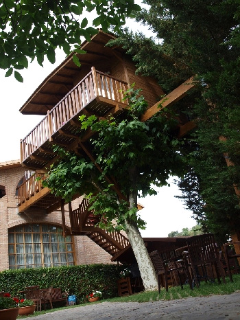 El Hotel Jakue de Puente la Reina, ubicado en pleno Camino de Santiago en su paso por Navarra, ha construido hace algunos años la primera habitación en la copa de un árbol, que ha bautizado con el nombre de Casa Maitenea, que significa “lugar del cariño”.