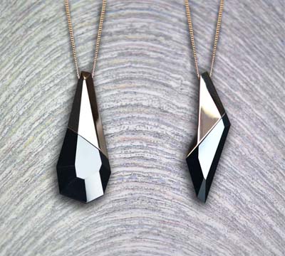 En primer lugar, los colgantes Onyx, que constan de dos modelos (Goutte, con el aspa en forma de gota, y Sylex, en forma de sílex, como su nombre indica), realizados a mano a partir de auténtica piedra mineral Ónix y una aleación de oro rosa 5N. La calidad de los acabados y las formas geométricas dejan patente que estamos ante piezas de auténtica alta joyería francesa. Su precio unitario es de 690 euros.