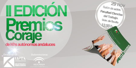 UPTA Andalucía ha convocado la II Edición de los Premios «Coraje de l@s autónom@s andaluces» con los que ha reconocido y premiado a los trabajadores autónomos, a las instituciones y a los hombres y mujeres que más se hayan distinguido en la defensa y práctica del trabajo autónomo en Andalucía.