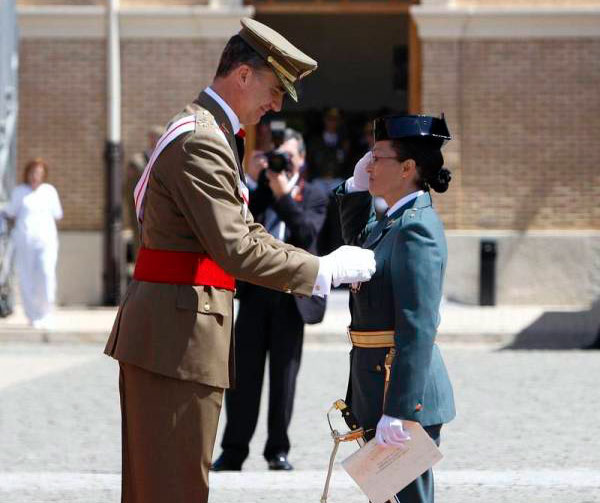 Previamente el pasado día 27 de junio en la explanada del Palacio Real de Aranjuez se despidió de la Bandera junto con sus compañeros en presencia del Director General del Cuerpo, Arsenio Fernández de Mesa, quien felicitó personalmente a la nueva Alférez por haber sido la primera mujer en conseguir el número 1 en el escalafón y haberlo hecho siendo la única representante femenina de la misma, con lo que significa de esfuerzo, compromiso y afán de superación que, si en el caso de todos los alféreces es evidente y, en la realidad social de hoy día en la que todavía la mujer ha de realizar sacrificios mucho mayores para alcanzar objetivos tan ambiciosos como el de dedicarse un año entero al duro estudio y entrenamiento para a conseguir su estrella de Alférez, es doblemente encomiable.