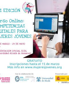 El plazo de inscripción finaliza el 15 de marzo La Federación Mujeres Jóvenes en colaboración con la Universidad de Alcalá de Henares lanza nueva edición del curso online “Competencias Digitales para Mujeres Jóvenes” dentro del Programa para la Inserción Sociolaboral de las Mujeres Jóvenes subvencionado por el Ministerio de Sanidad, Consumo y Bienestar Social en […]
