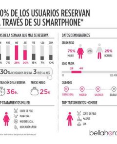 Un estudio del portal especializado en belleza, Bellahora, demuestra que el 50% de los usuarios de este ya reservan hora en los centros de belleza y peluquería a través de su teléfono móvil o tableta y lo hace con unas 36 horas de antelación. Entre los usuarios que reservan vía online un 75% son […]
