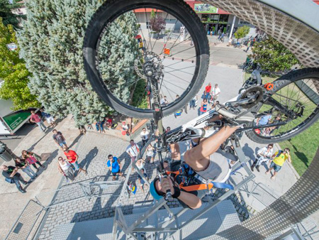 Looping Bike, una impresionante rampa circular en la que los interesados, con ayuda de una bicicleta de montaña, un arnés y un monitor pueden dar una o varias vueltas de 360º.
