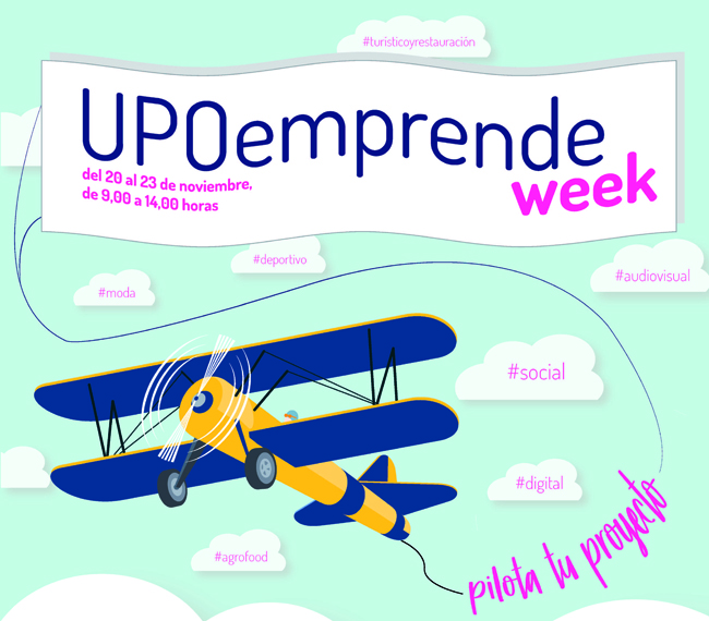 UPOemprende week, que se celebrará del 20 al 25 de noviembre, contará con la participación de profesionales, expertos y protagonistas de ejemplos exitosos en materia de emprendimiento. Bajo el lema “Pilota tu proyecto, pilota tu vida”, este programa tiene como objetivo el fomento y la promoción de la cultura emprendedora en el ámbito universitario dentro de la estrategia de transformación social de la UPO. Para ello, se desarrollarán mesas redondas especializadas en los grandes nichos de emprendimiento como son el sector audiovisual y digital, agroalimentario, de turismo y restauración, moda y emprendimiento social, entre otros.